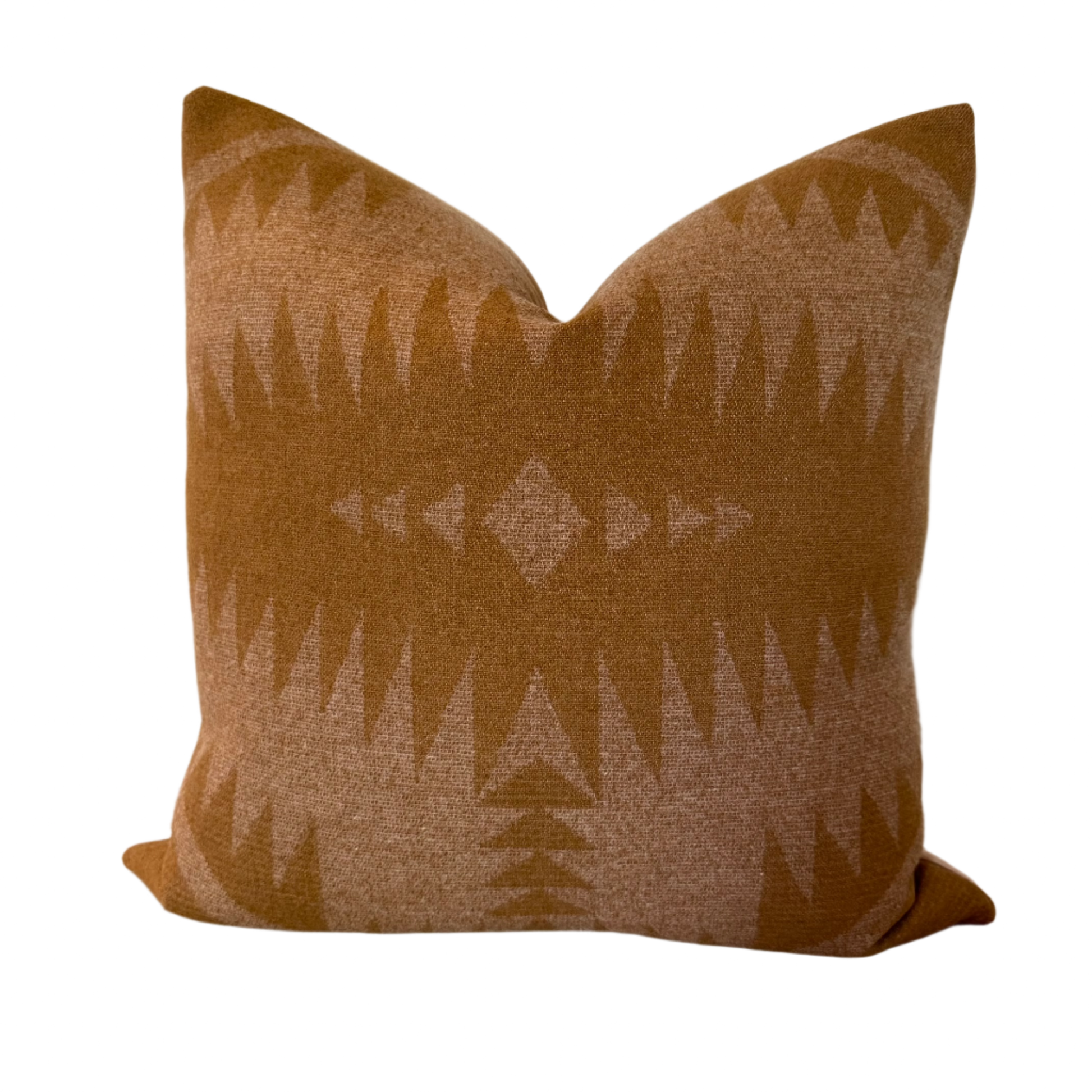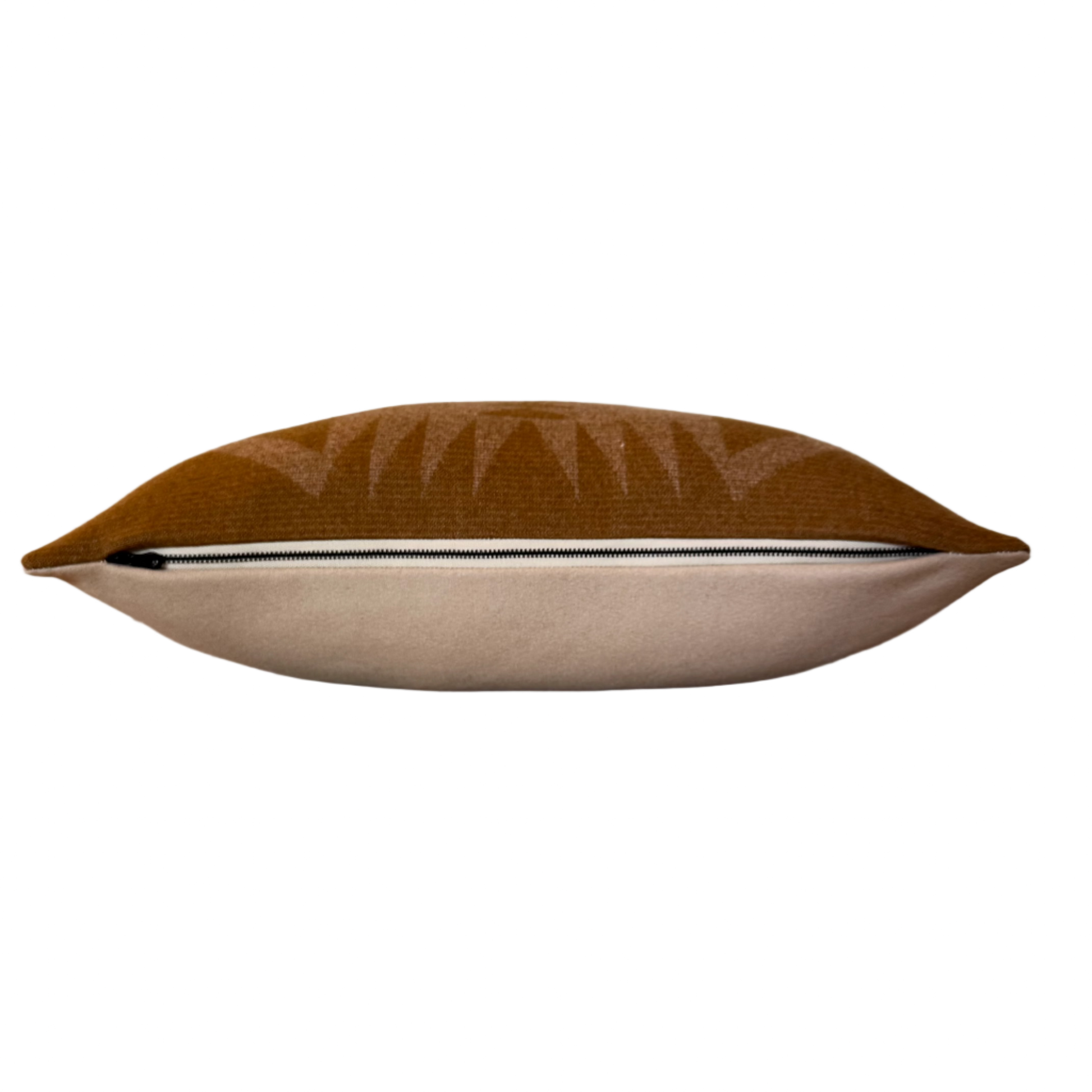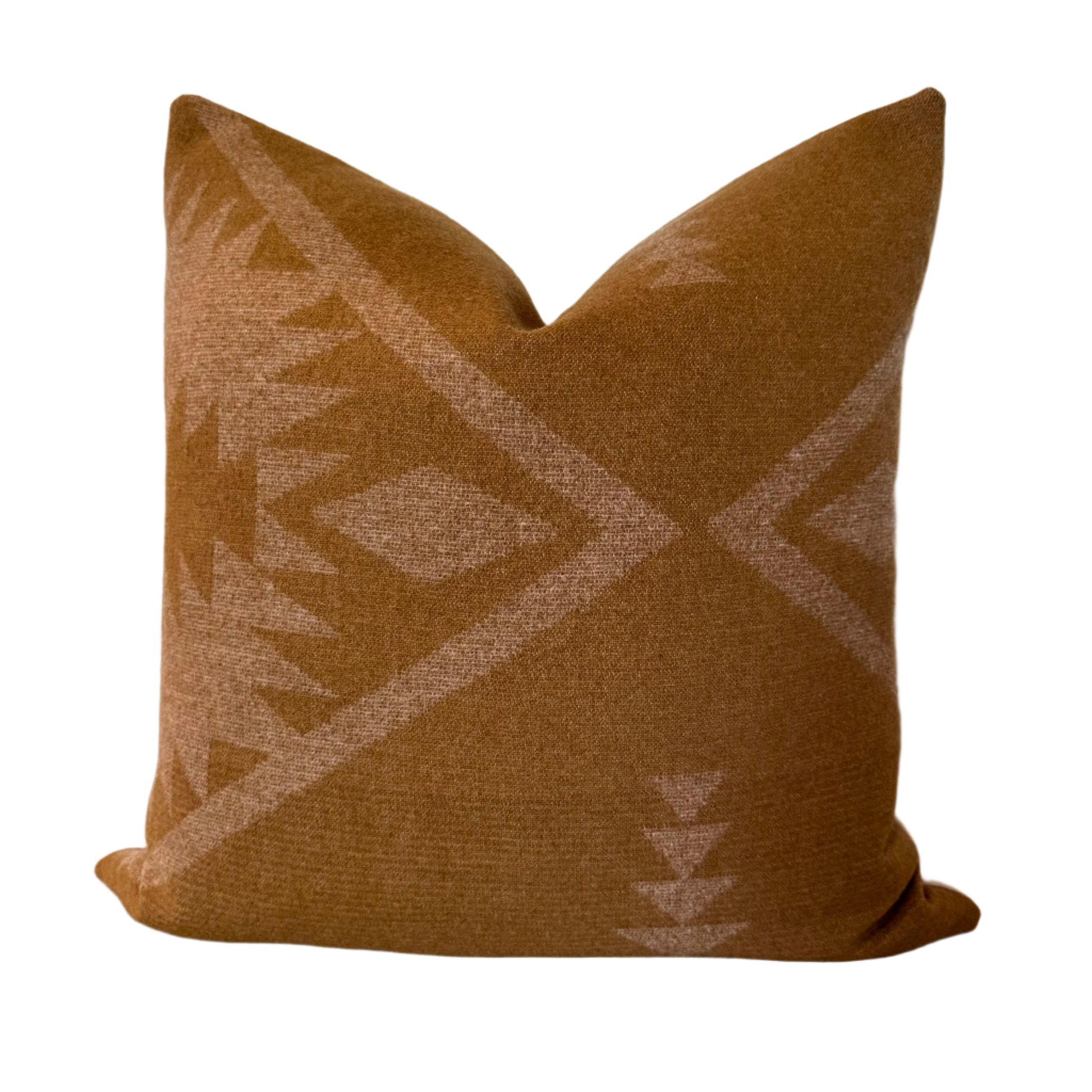 - Front: Sponge jacquard by Pendleton in camel tan and light khaki; 100% pure virgin wool