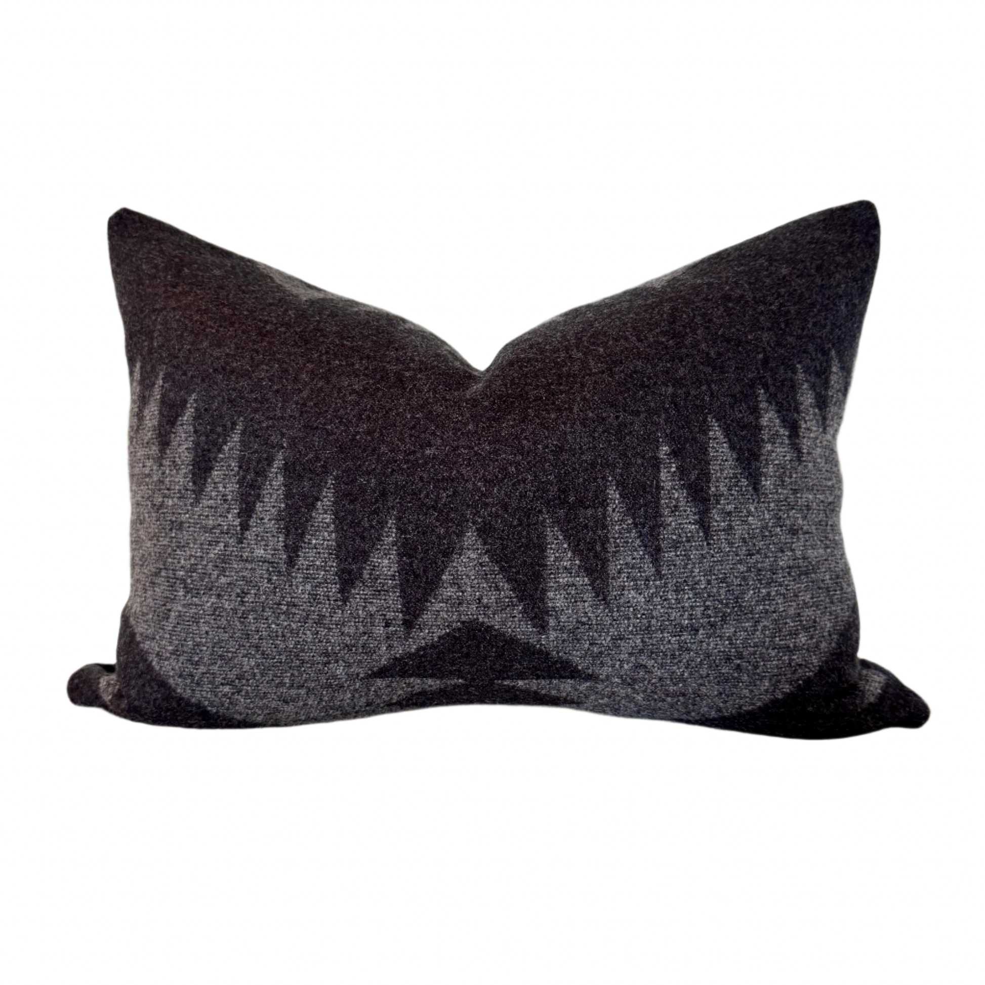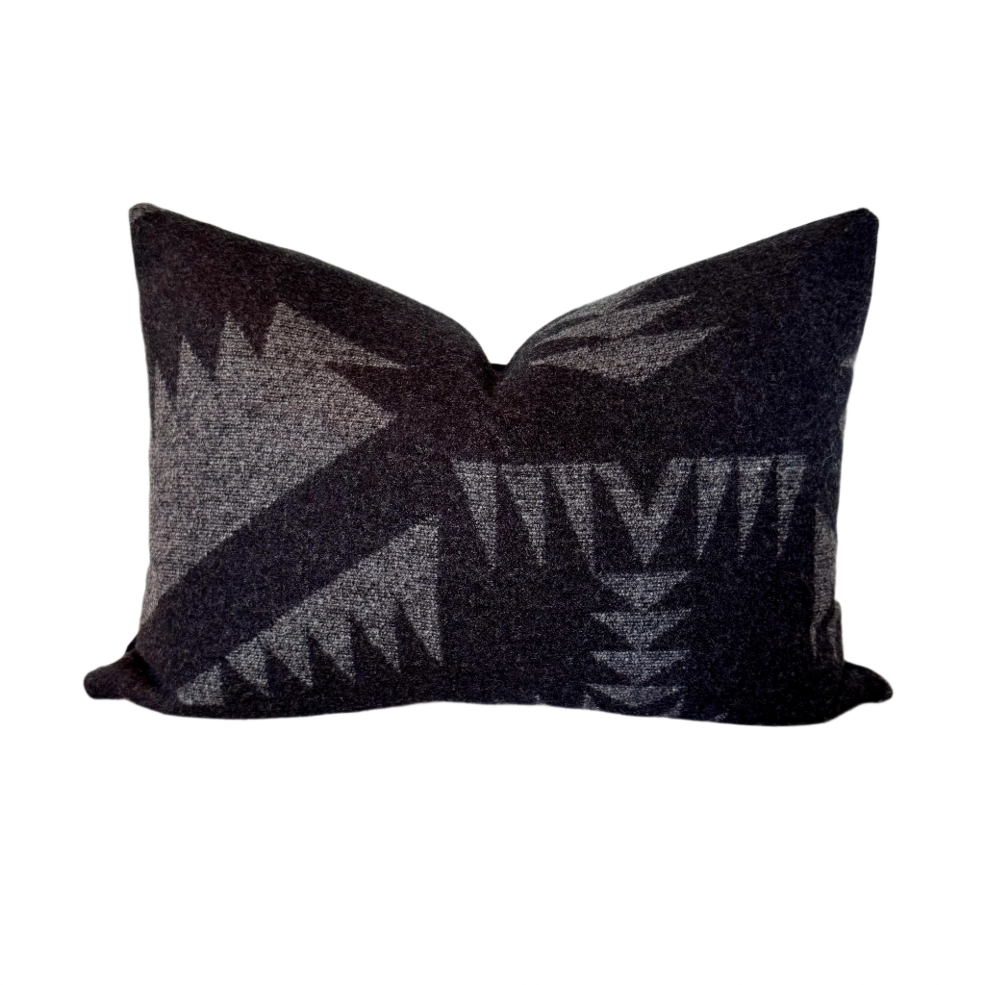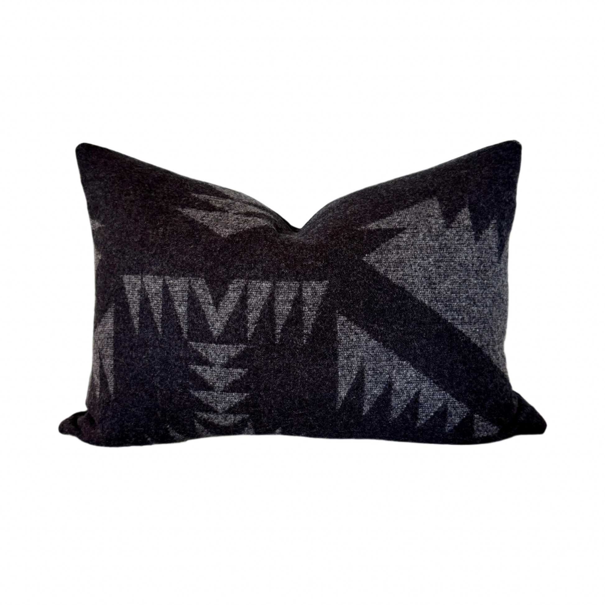 - Front: Sponge jacquard by Pendleton in charcoal and light gray; 100% pure virgin wool