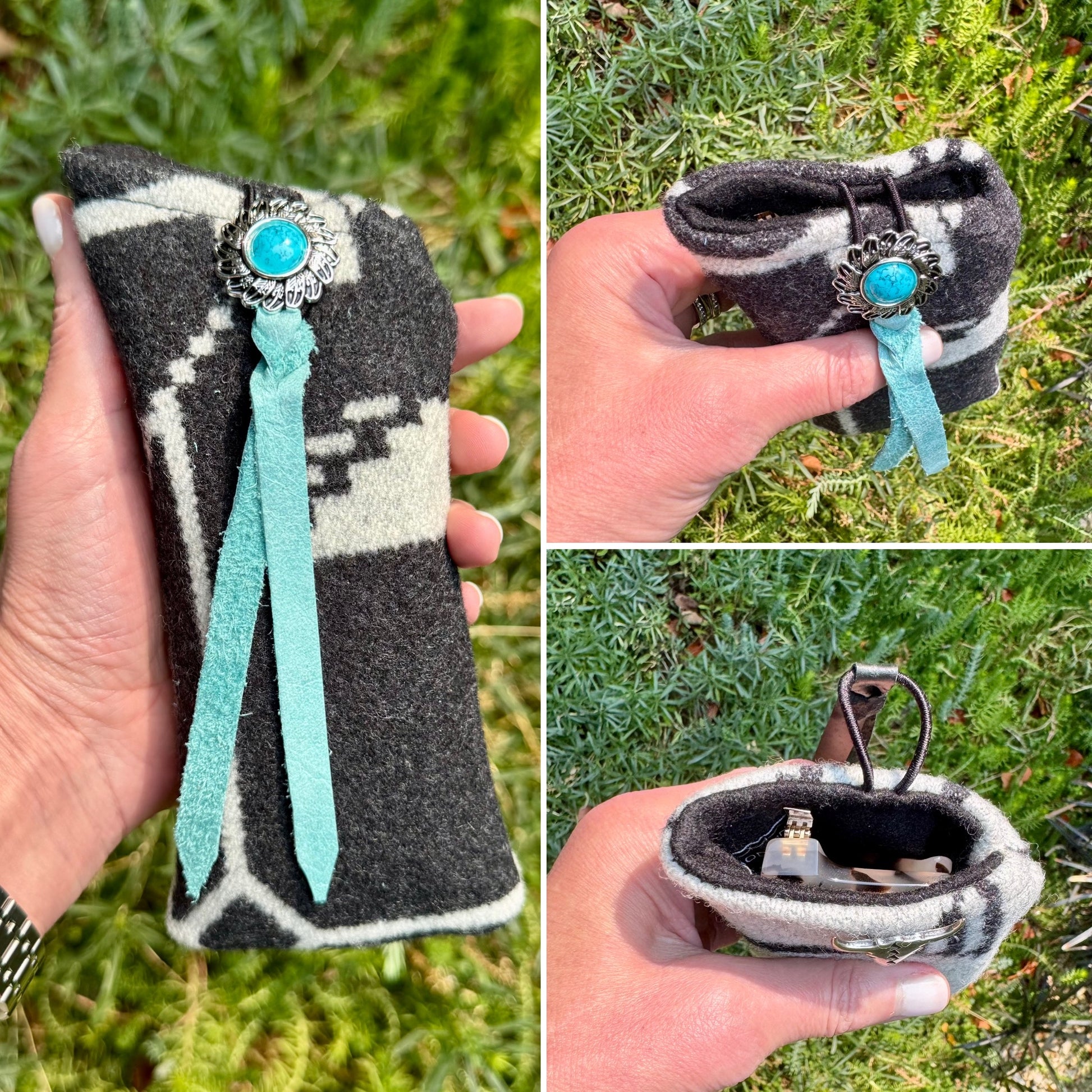 Every case is a unique piece of art, showcasing a variety of striking conchos and authentic leather details. The durable wool and secure design ensure your sunglasses stay safe from scratches and bumps, while the vibrant patterns make a bold, personal statement.