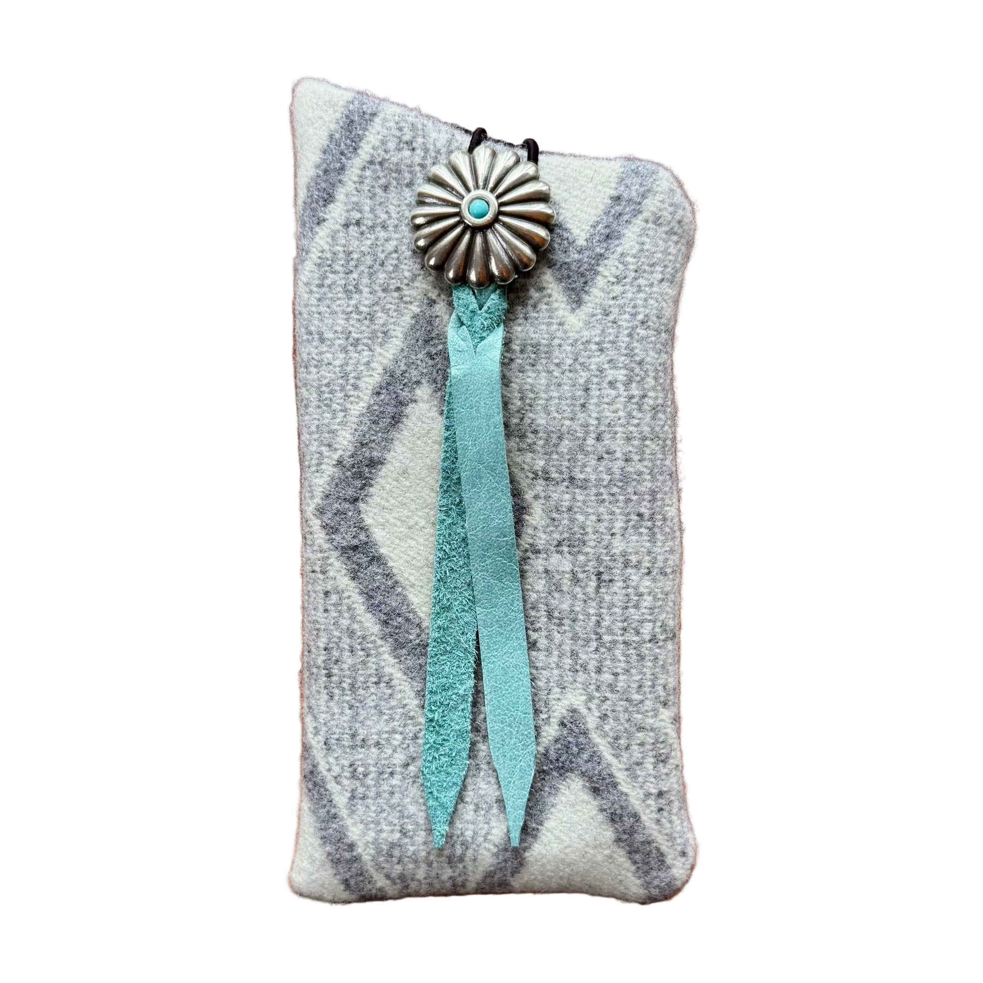 Every case is a unique piece of art, showcasing a variety of striking conchos and authentic leather details. The durable wool and secure design ensure your sunglasses stay safe from scratches and bumps, while the vibrant patterns make a bold, personal statement.